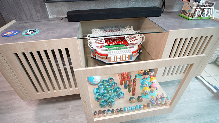 部份地台門安裝加厚強化玻璃,展示業主的玩偶。圖:入伙