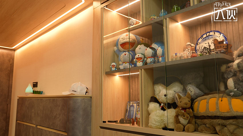 到頂收納櫃放了很多玩偶。圖:入伙