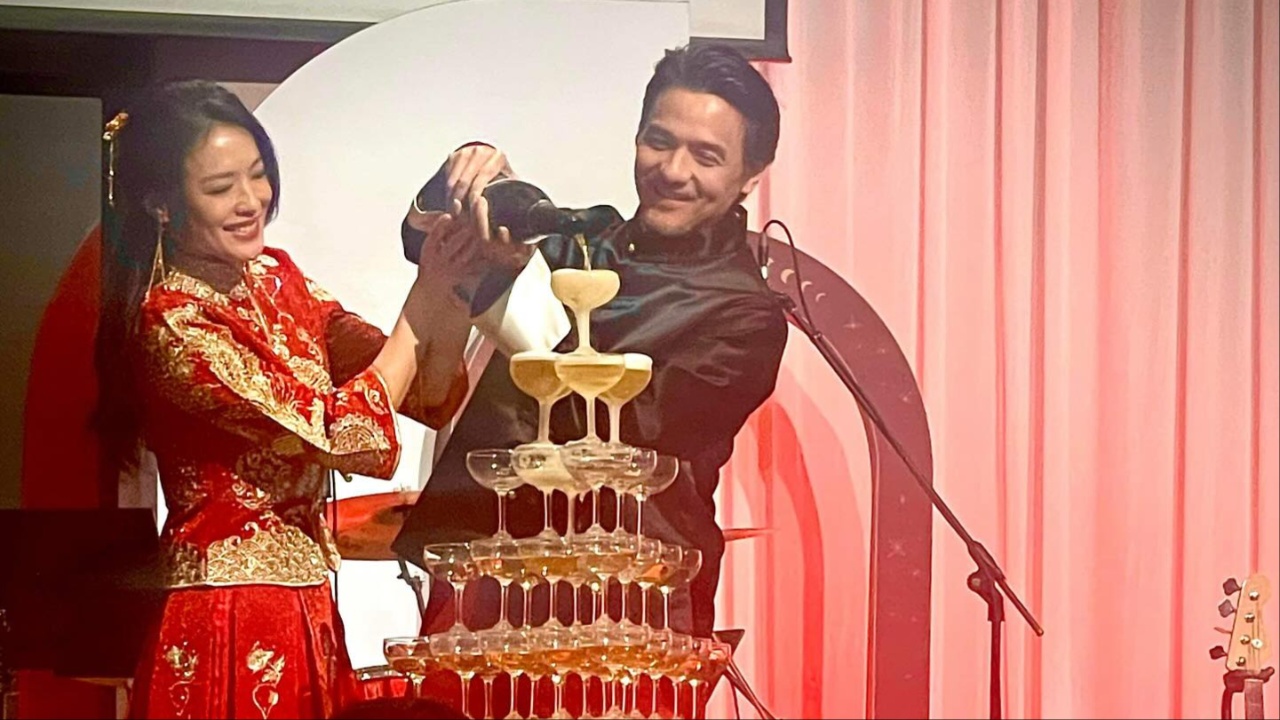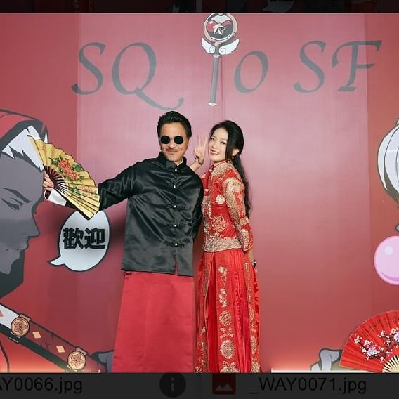 馮德倫昨日在台北為老婆舒淇搞生日會,更鬼馬著上中式禮服。(圖:sqwhat@IG)