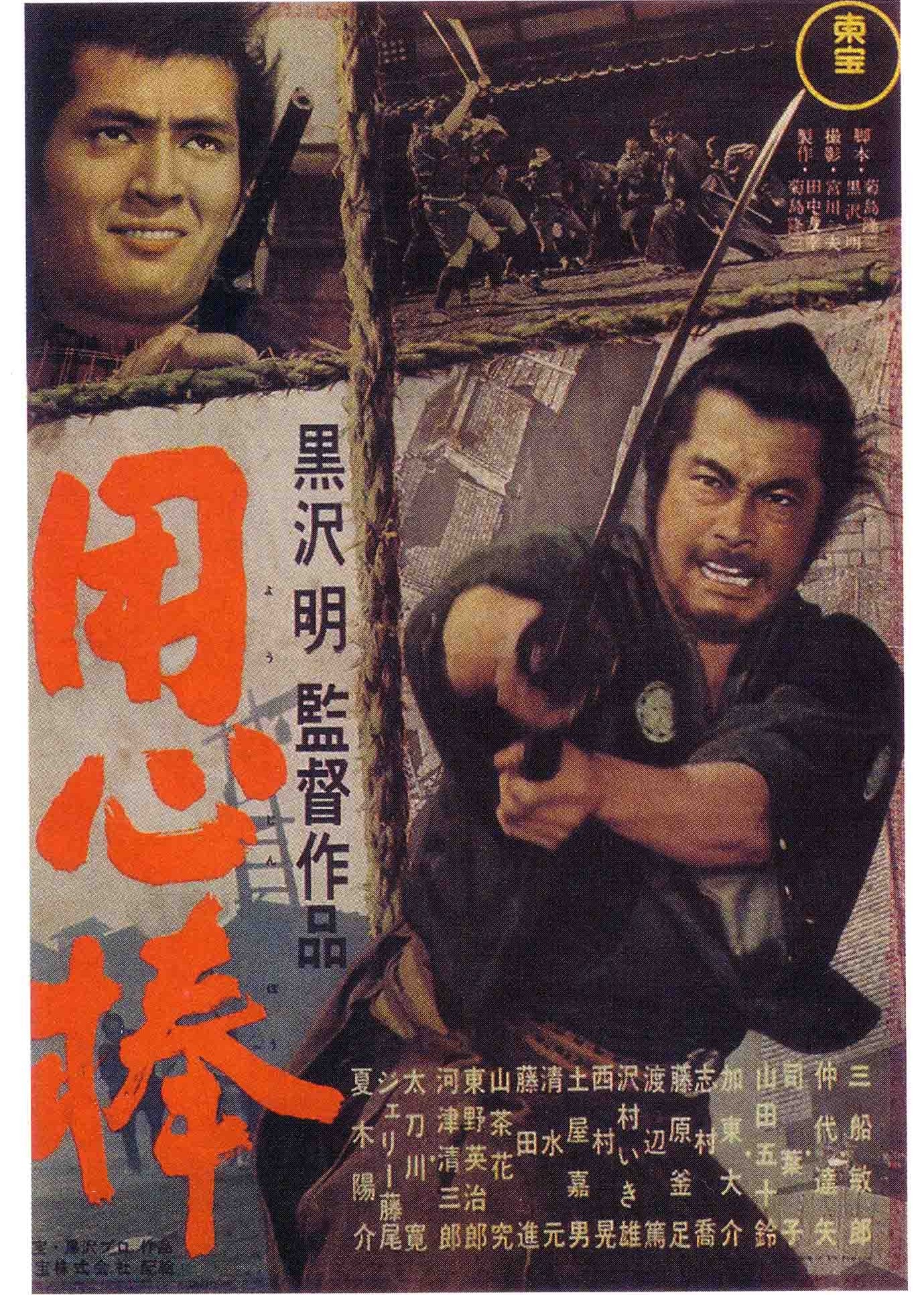 啟發《三四郎》一劇的黑澤明作品《用心棒》,以喜劇性的格調講述了外表落魄邋遢的浪人武士三十郎施計剷除兩派惡霸的故事,為黑澤明首次拍攝娛樂性較強的動作片,亦是他最賣座的電影。日語中「用心棒」一詞意指受人雇佣保護重要人物或物品的人,在過去一般指的是武藝高超的武士,現在多用來指代保鏢。