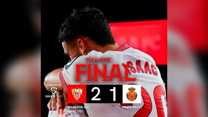 西甲聯賽,西維爾主場2比1擊敗馬略卡,安尼斯利與艾錫羅美路,下半場先後為主隊破網。馬略卡到補時5分鐘才由阿比當柏拉斯破蛋。