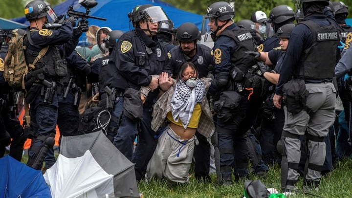 美國多間大學校園繼續有示威聲援巴勒斯坦人,超過90人被捕。在弗吉尼亞大學,警方宣布將示威列為非法集會,但清場期間遇到反抗,要發射催淚彈驅散,25人涉嫌非法闖入被捕。校方指,違規的人當中包括校外人士,示威者拒絕拆除違規搭建的帳篷,保安處理期間推撞,校方報警,要求警方介入。