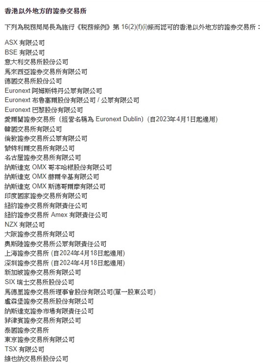 【橙訊】香港稅務局將上海及深圳交易所加入認可名單,已於4月18日生效。