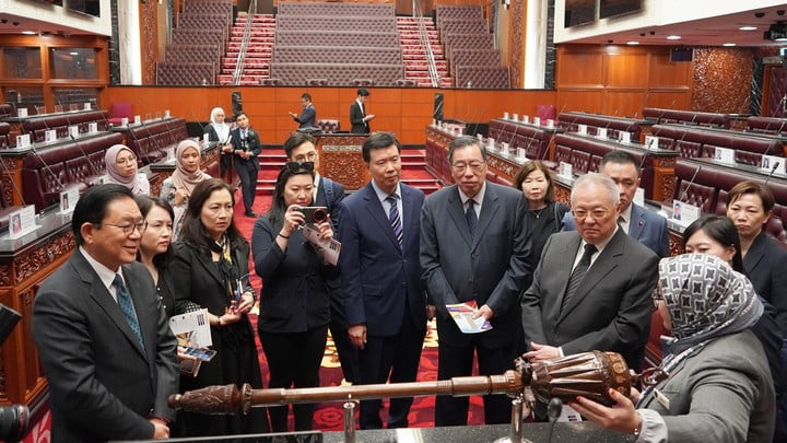 立法會考察團繼續7日的東盟職務考察,在馬來西亞的第二天行程,早上到訪馬來西亞國會,拜會下議院議長,並與部分國會議員會面,了解馬來西亞議會制度和現況。雙方就議會事務、經貿合作和促進社會凝聚力等議題交流。考察團又與大馬農業銷售局的代表會晤,討論清真認證和馬來西亞食品入口香港等議題。