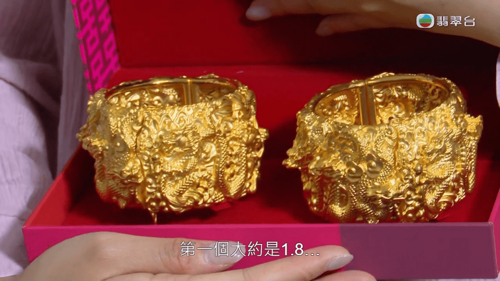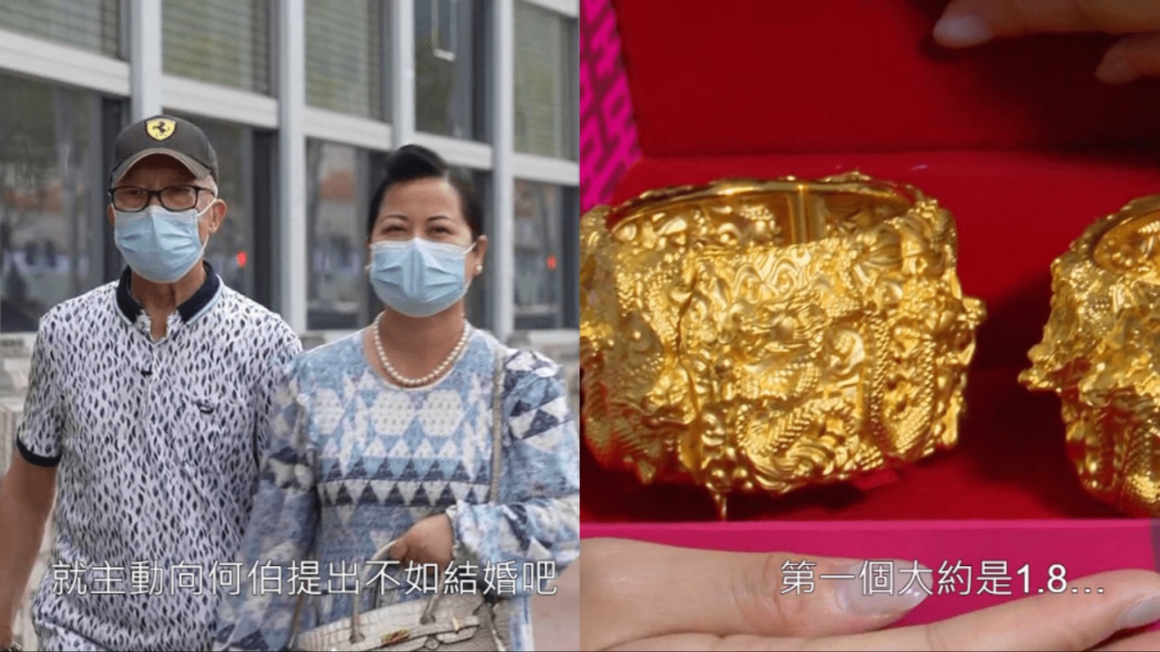 何伯送上一對價值10萬的龍鳳鈪給新何太做情人節禮物。(圖:《東張西望》截圖)