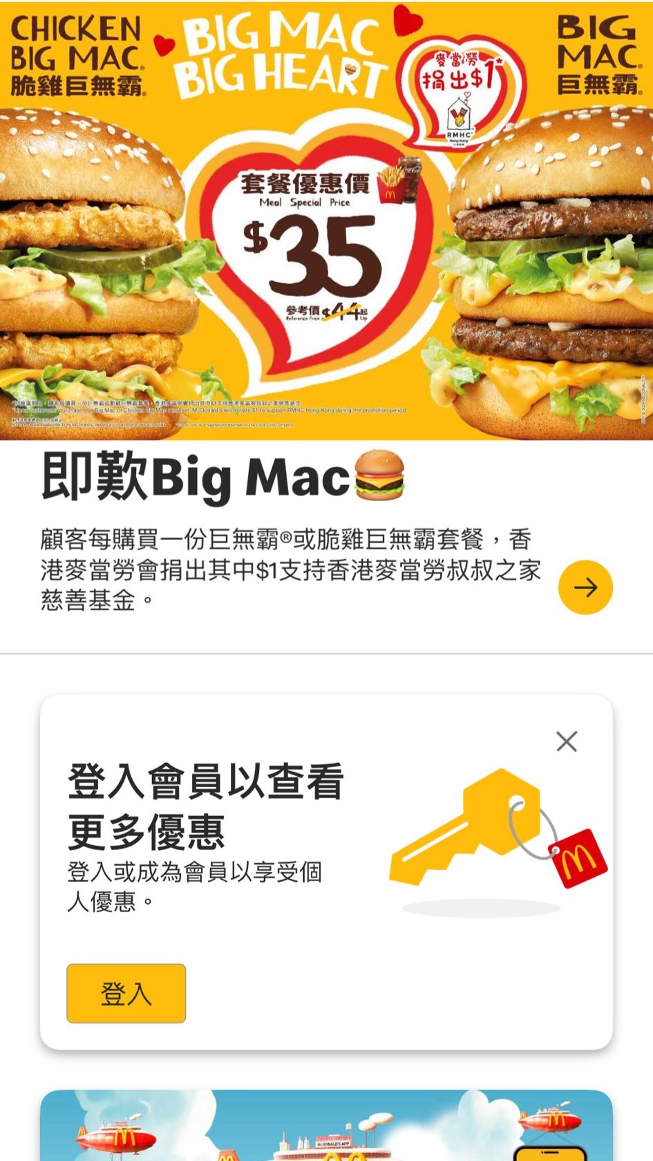 新版面首頁(圖:麥當勞App屏幕截圖)