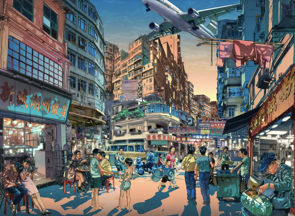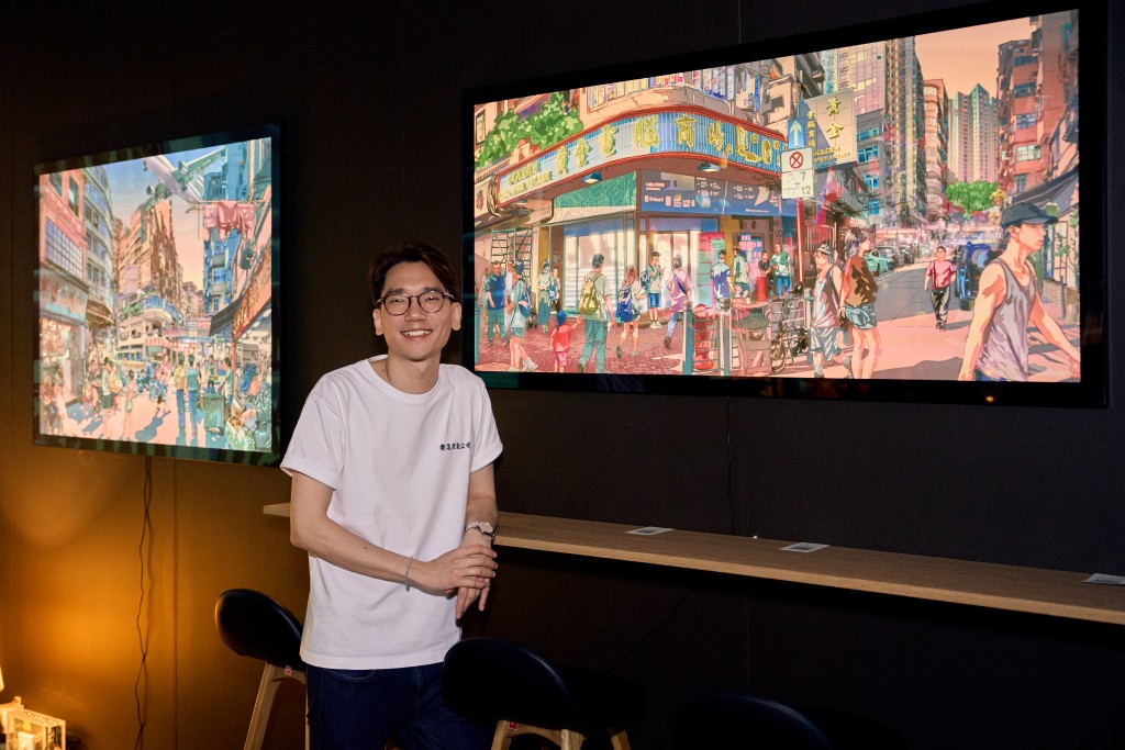 此外,現場又擺放了十二幅以香港街景為主題的藝術插畫,將唐樓、傳統麵檔、霓虹招牌等元香港舊區特色注入畫內。