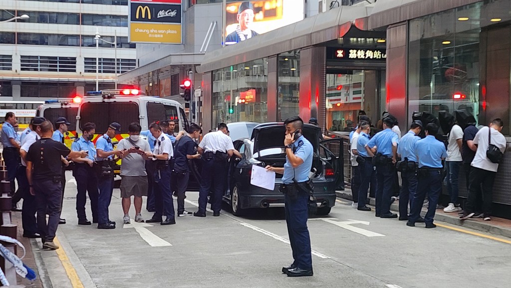 【橙訊】今日下午3時許,一輛私家車駛經荔枝角時,被警方發現有可疑,遂在長荔街與長義街交界截停涉事私家車,證實該車套上假牌,扣留車上多人調查。