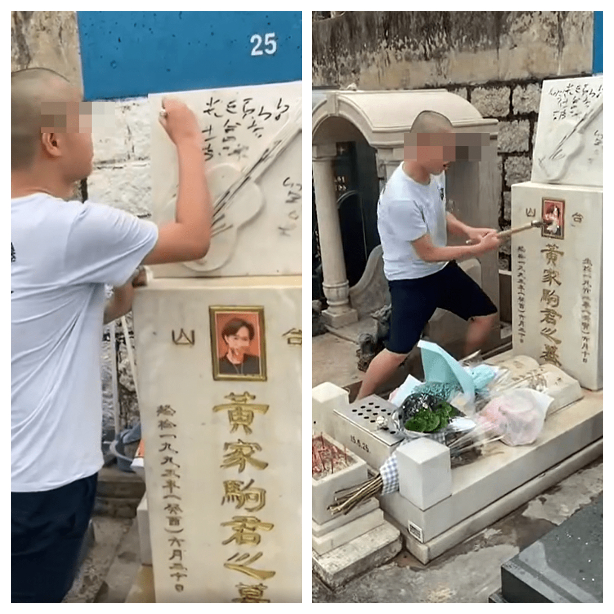 Beyond黃家駒墓碑遭鐵鎚狂砸淋可樂 兩男被捕其中一人疑為YouTuber