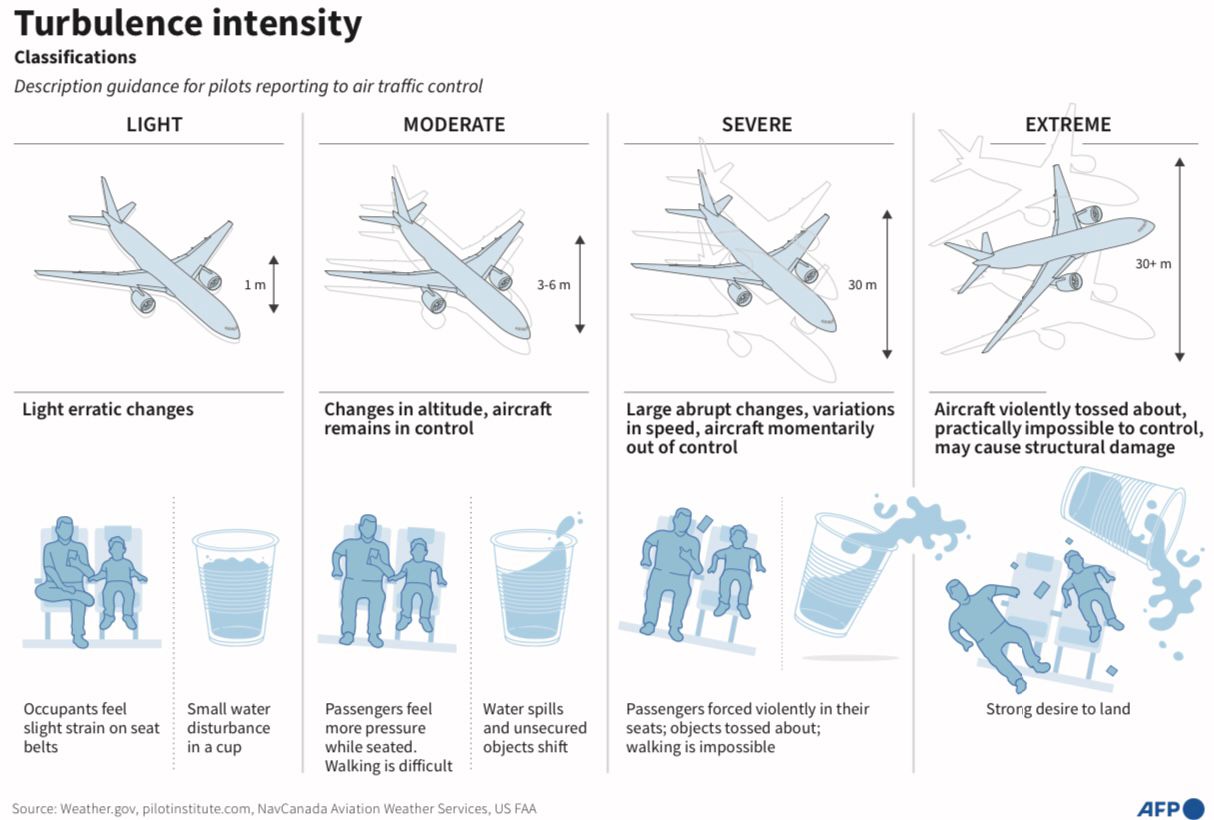 【橙訊】新加坡航空周二(21日)一班由英國倫敦飛往新加坡的航班遇上強烈氣流,被迫降落在泰國曼谷。事件造成一名英國籍乘客死亡,83人受傷。根據法新社資料,空中氣流可以用嚴重程度分為4種,而最嚴重的氣流可能會導致飛機難以控制。