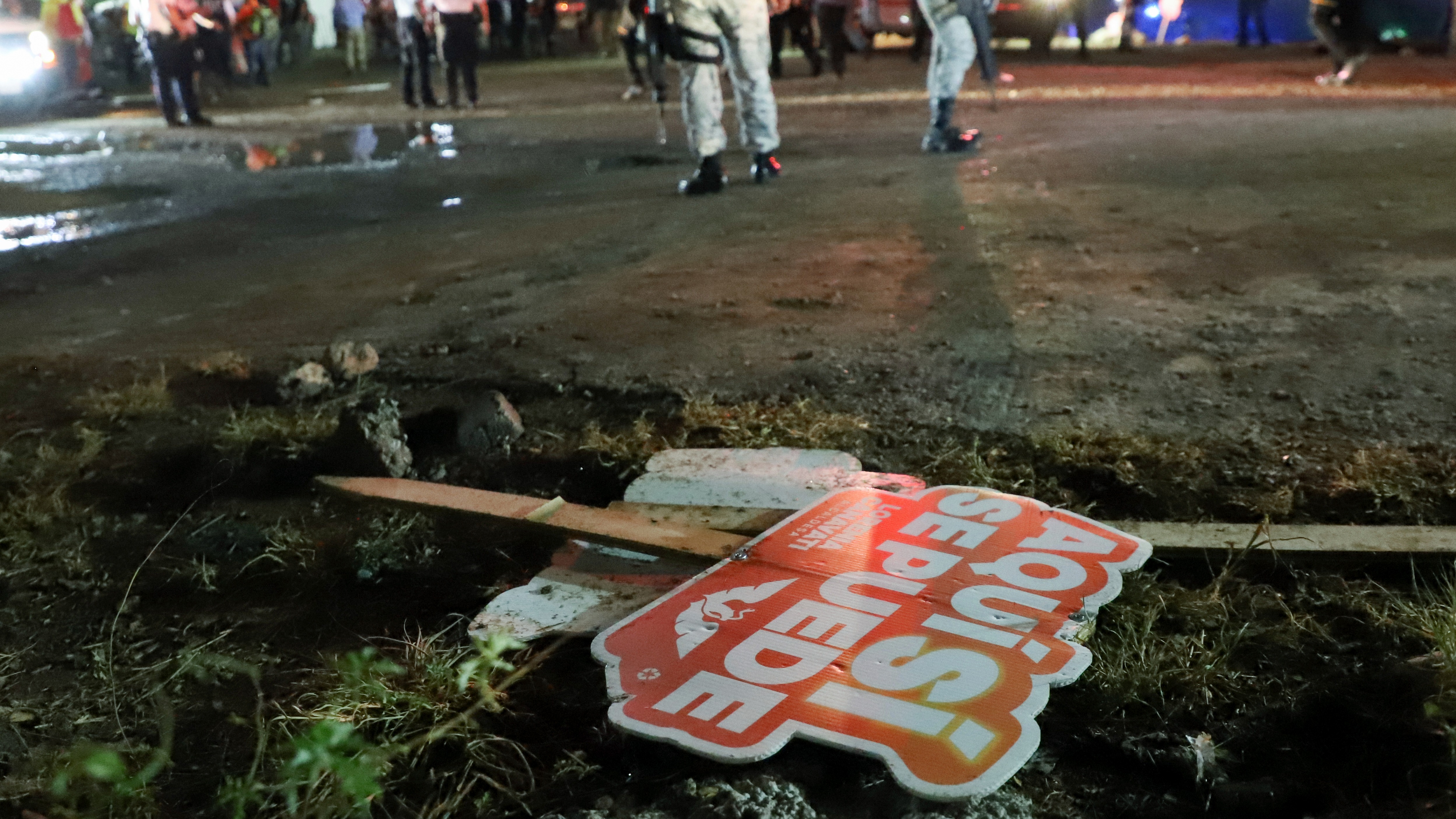 墨西哥北部新萊昂州加西亞市(city of San Pedro Garza García)周三晚上正舉行代表「公民力量」參加總統大選的候選人梅內斯 (Jorge Alvarez Máynez) 的競選活動。梅內斯有上台發言,活動舉行期間突然有強風把整個舞台吹至倒塌,現場的支持者紛紛走避。