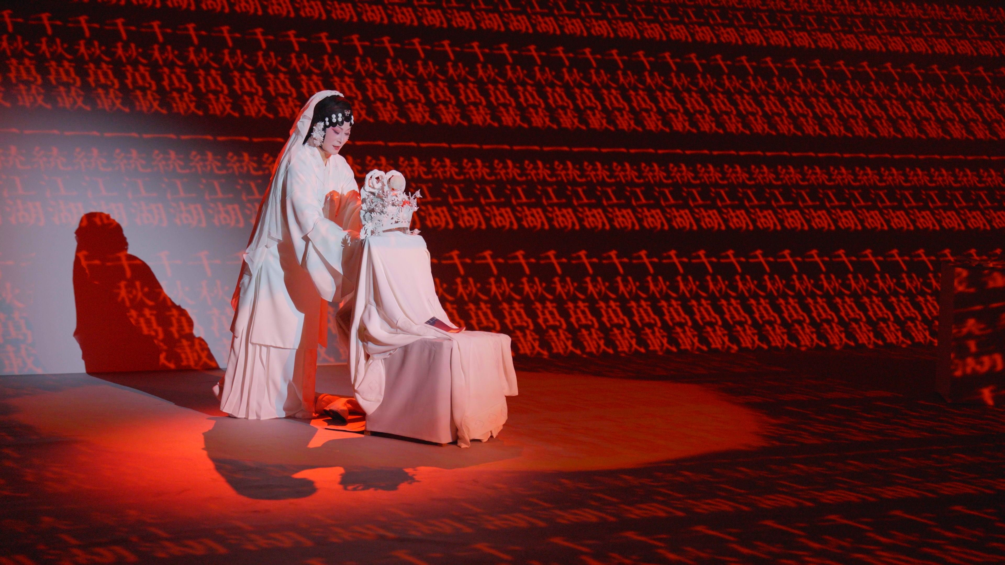 不可不提的還有沉浸式音響聲景(Soundscape)技術:在傳統戲曲舞台上,聲音只從一處、或者是喇叭處傳來,而透過結合這一技術,演員的聲音四面八方環繞,能帶來更好的沉浸感,而音效清晰到就連演員的呼吸聲都可聽見。「戲曲本身單唱顯得很單薄,但這種四面觸動你的聲音,可以刺激我們更好地演繹這個人物」,孔愛萍說。