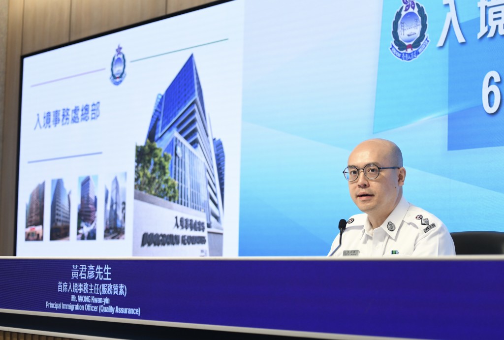 入境處首席入境事務主任黃君彥介紹新總部即將投入服務。