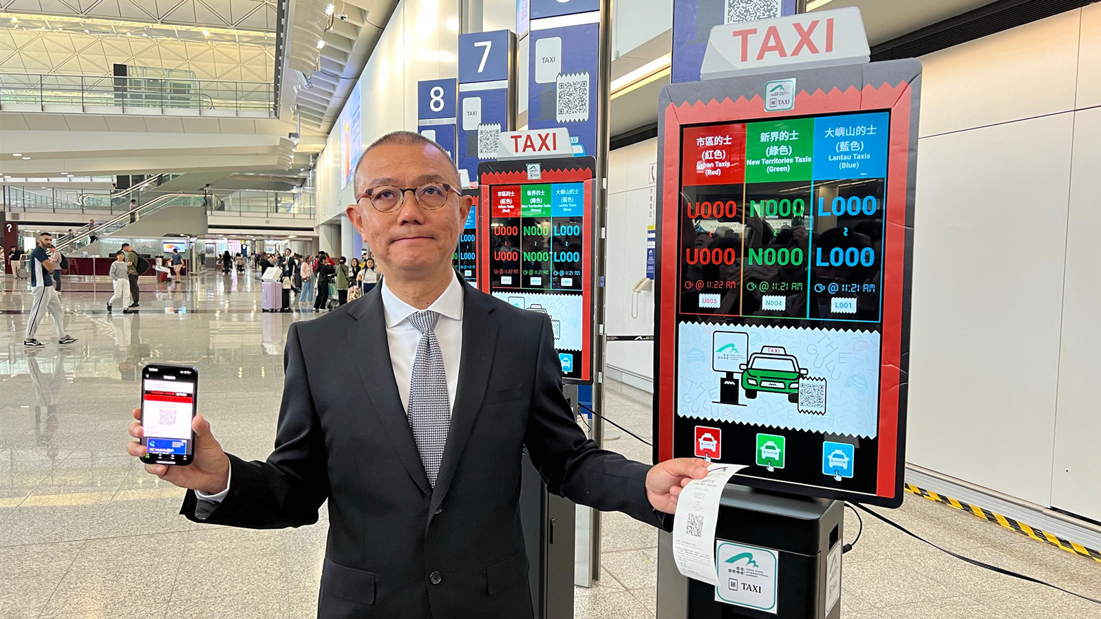 姚兆聰介紹機場設立的電子的士派籌系統。