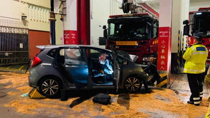 【橙訊】昨晚深夜約11時半,一輛私家車沿窩打老道西行,期間懷疑失控剷上行人路,再撞向油麻地消防局大門的石柱,69歲司機腿部嚴重受傷被困,由消防員救出,惟送院搶救無效不治。