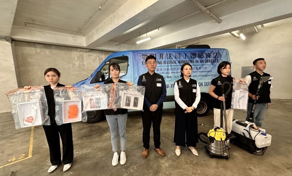 入境處特遣隊副指揮官陸佩賢表示,入境處致力打擊不同行業非法勞工,以保障本地勞工市場。最近留意到有內地清潔公司利用「小紅書」主流社交平台作宣傳,聲稱可以在香港提供清潔服務,入境處專責調查組經深入調查及情報分析,成功鎖定一間安排非法勞工來港提供清潔服務的內地公司。
