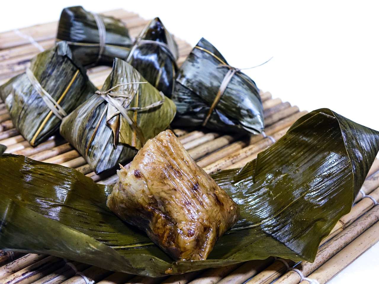 據記載,早在春秋時期,用菰葉(茭白葉)包黍米成牛角狀,稱「角黍」;用竹筒裝米密封烤熟,稱「筒粽」。東漢末年,以草木灰水浸泡黍米,因水中含鹼,用菰葉包黍米成四角形,煮熟,成為廣東鹼水粽。