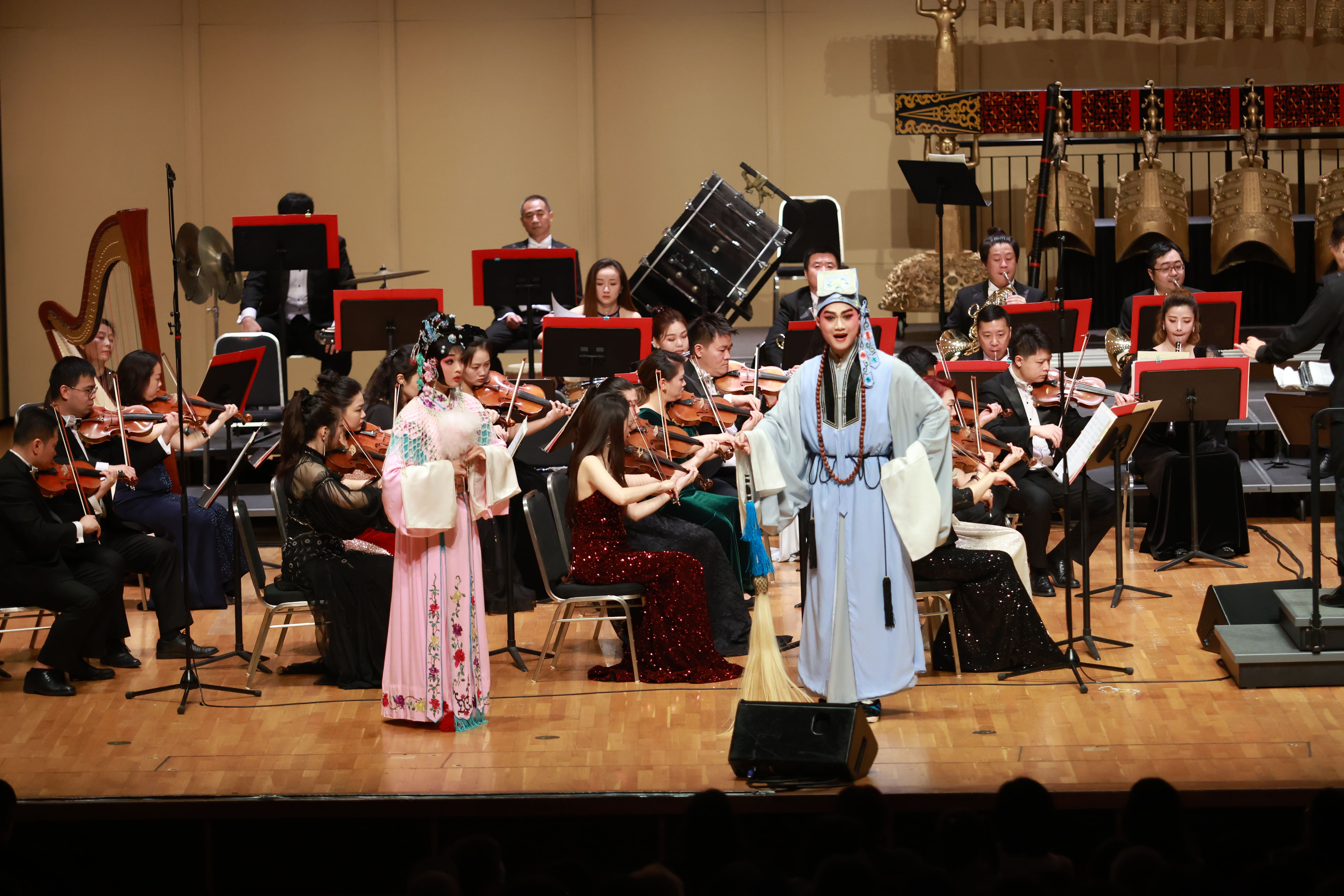 湖北是戲曲大省,武漢「戲碼頭」享譽中外,各個劇種異彩紛呈。音樂會上,湖北省戲曲藝術劇院黃梅戲劇團、漢劇團、楚劇團帶來漢劇《貴妃醉酒》、楚劇《站花牆》和黃梅戲《女駙馬》、《天仙配夫妻雙雙把家還》、《風塵女畫家海灘別》選段及黃梅戲經典小調聯唱等精彩節目,展現荊楚戲曲的韻味與風情。