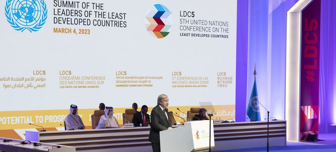 聯合國秘書長古特雷斯在第二次聯合國多哈會議上講話。