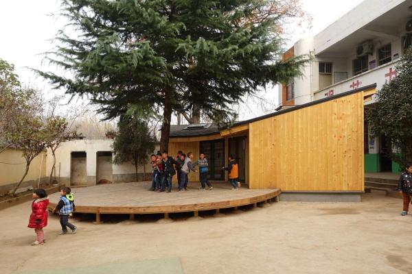 長久以來,學校並沒有圖書室,以至於三百二十本藏書,分散在不同的教室中。一間名為SLOW Architects的建築師事務所,在教室一側,建了一間造型奇特的圖書室。孩子們高興極了。