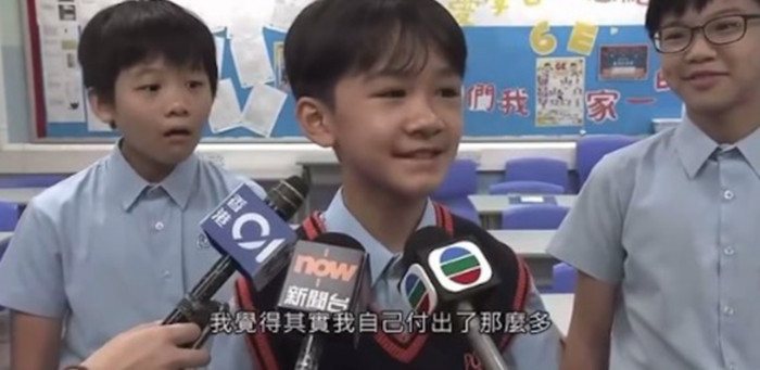 【橙訊】升中派位昨日放榜,油蔴地天主教小學(海泓道)一名姓陳學生成功獲派入華仁書院,他接受傳媒訪問時稱周一至周五都有補習,讀書是他的本份,其後方其中一名同學露出「O 嘴」的驚訝表情,片段在網上流傳,「O嘴」同學迅即爆紅。