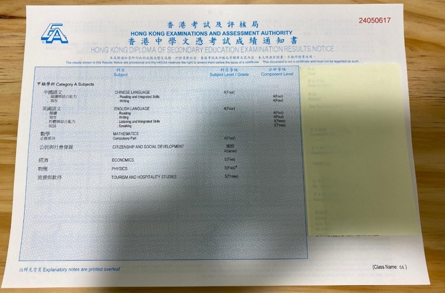 一名沙咀懲教所考生,考獲5科最高共22分及公民與社會發展科達標的成績,當中在經濟科及物理科更取得5的佳績。
