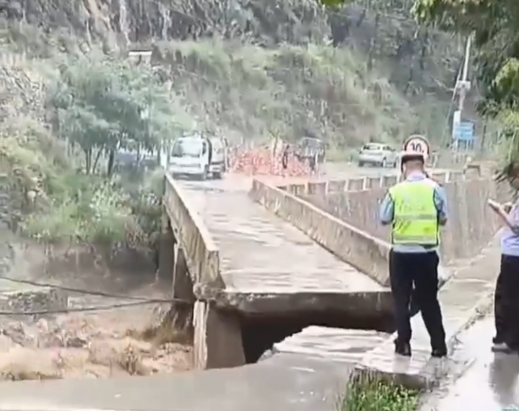 周三(24日)甘肅隴南徽縣柳林鎮一橋樑被山洪沖走。影片顯示橋樑垮塌並被沖走。政府已採取措施,無人員傷亡。
