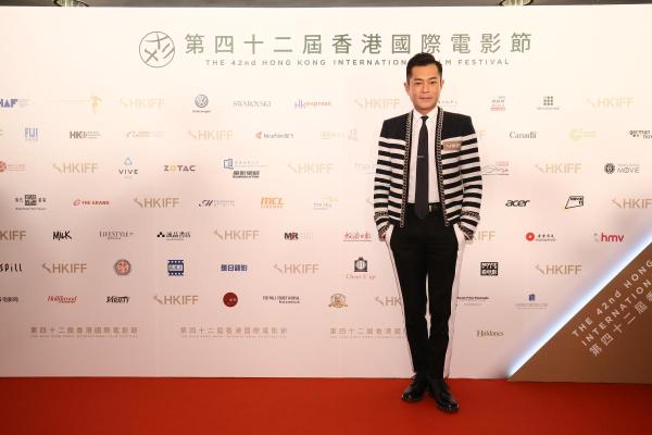 古天樂已連續五屆擔任電影節大使,當晚他身著藍白色間條外套與黑白粗間條西褲行紅毯,打扮簡單清爽。