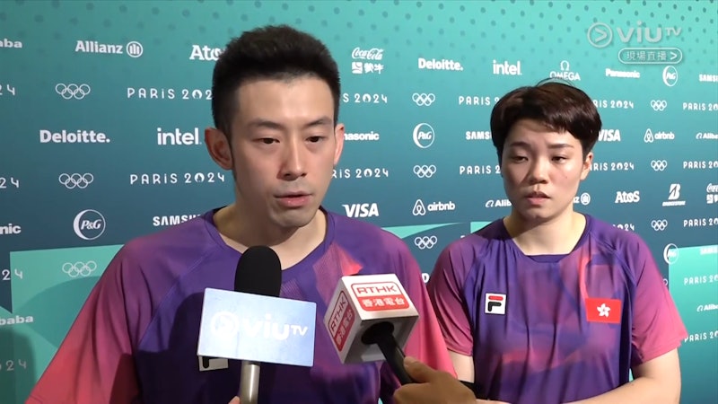 港隊乒乓球混雙組合黃鎮廷與杜凱琹在8強擊敗西班牙組合,殺入巴黎奧運4強。(圖:ViuTV直播截圖)