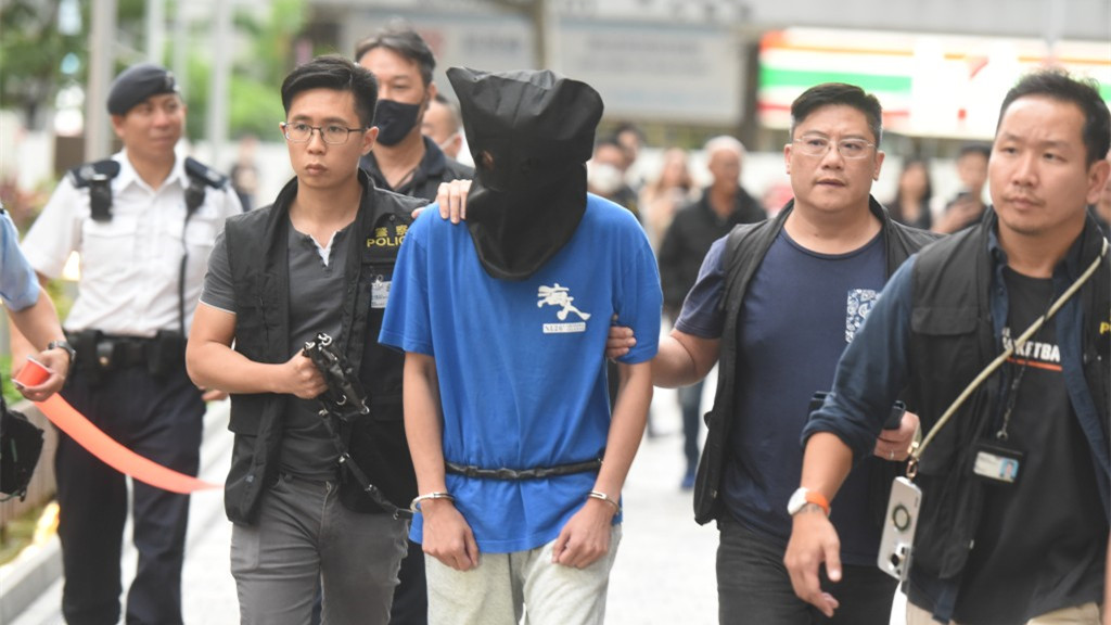 被告温梓汶(蒙頭者)被控謀殺罪。資料圖片