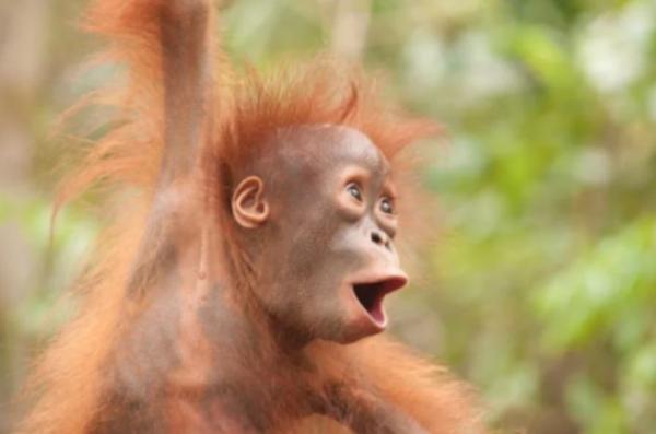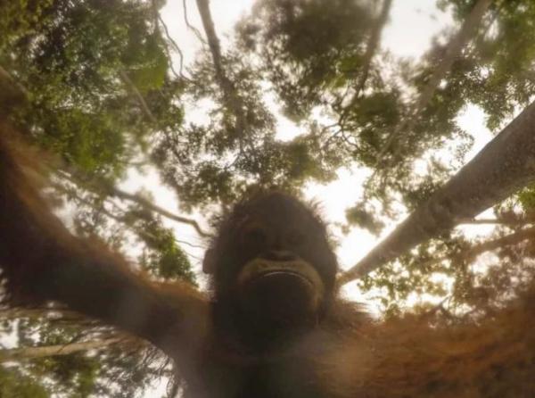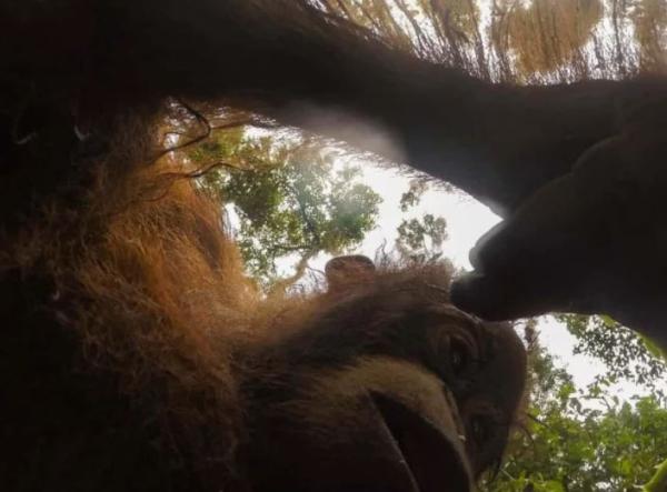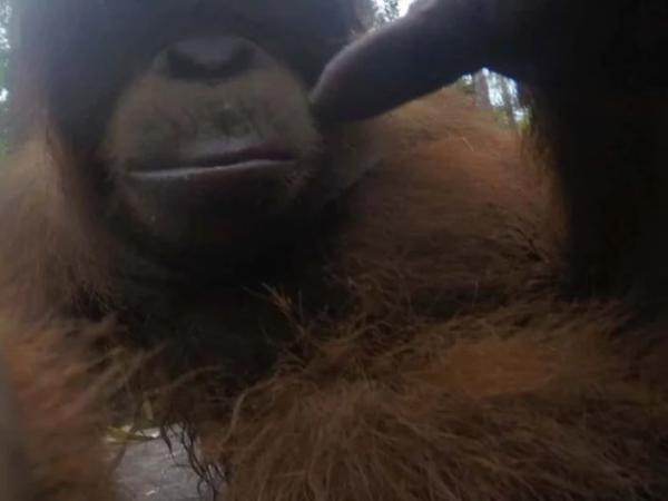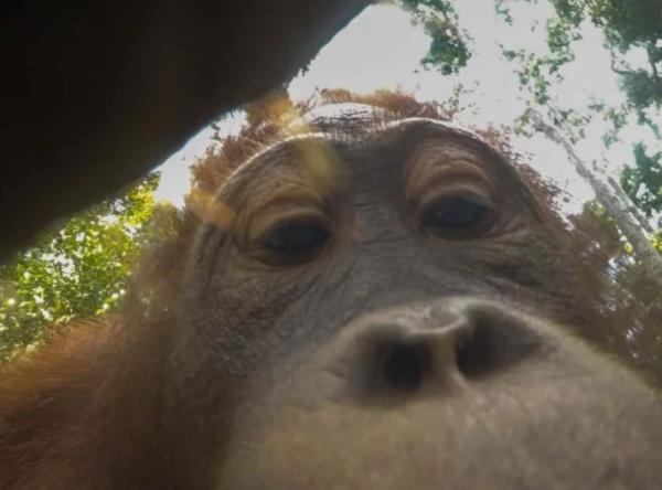 這隻猩猩在森林中「撿」到了一台GoPro——當然,相機是野生動物攝影師Ian Wood有意留在那裡的。起初牠以為照相機是食物,還放到嘴裡咬了咬,失敗而告終。據衛報報導,攝影師不擔心相機損壞,倒是比較擔心猩猩會因此噎著。