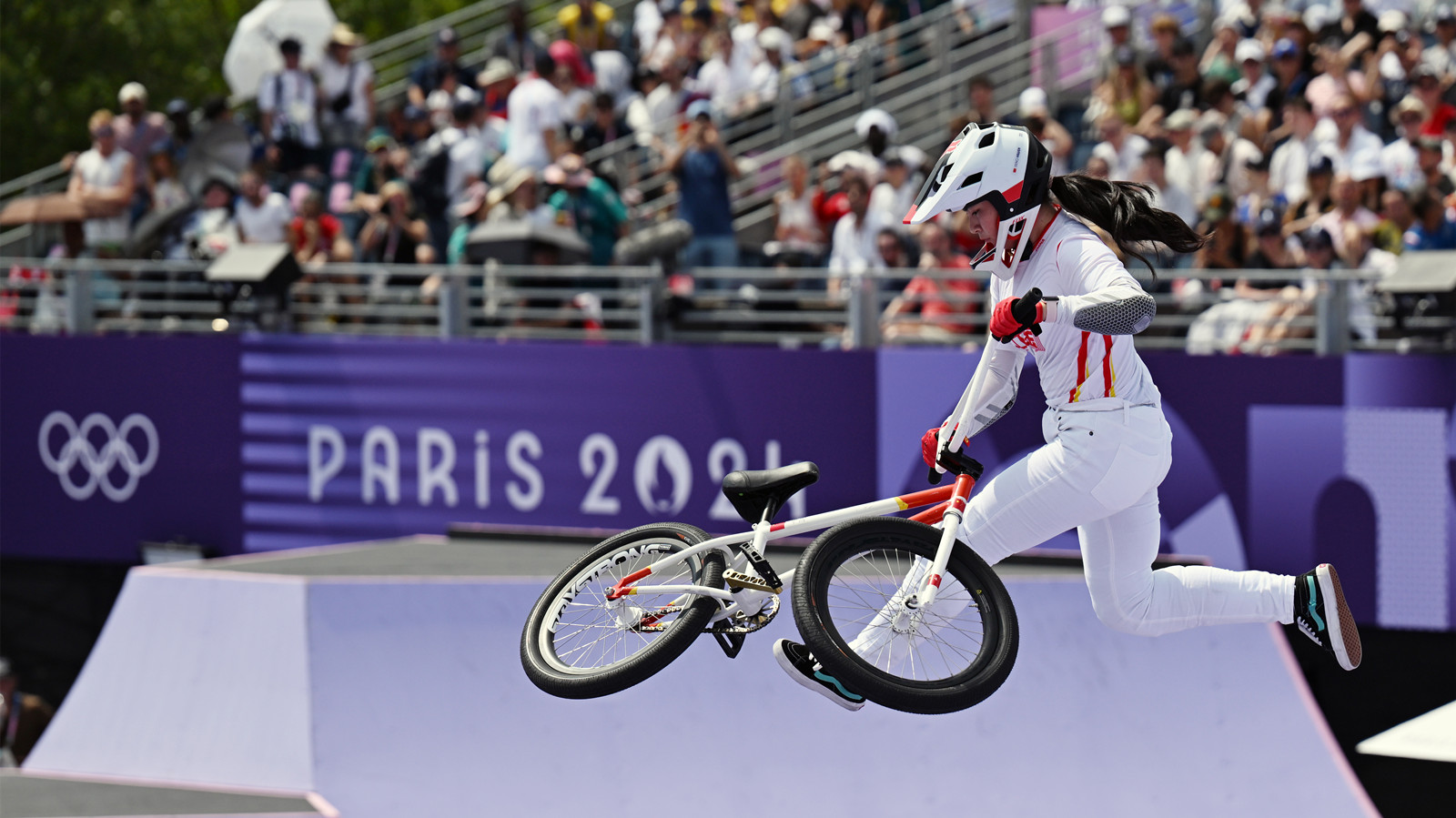 鄧雅文在單車BMX女子自由式公園賽奪金。