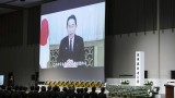 岸田文雄在儀式上致辭時說,堅持無核三原則,致力實現無核武世界,是日本作為唯一戰爭核爆受害國的使命。