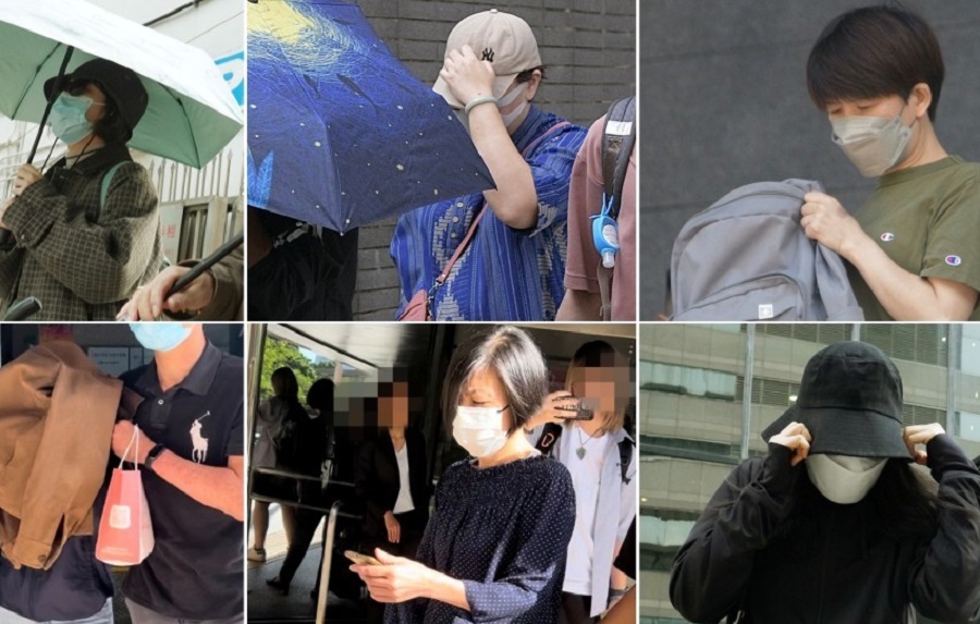 左上至右為被告黃潔瑩、伍家穎、鄧月媛,左下至右梁曉彤、梁善儀及陳信興。資料圖片