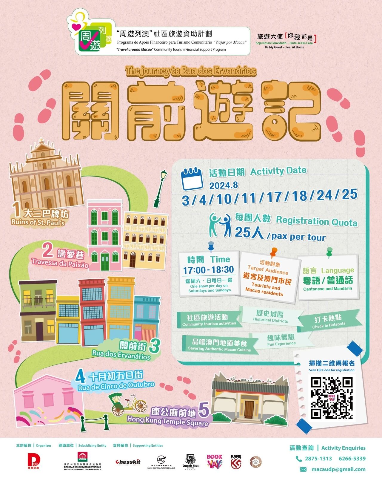 活動路線:大三巴牌坊→戀愛巷→關前正街→十月初五日街→康公廟前地