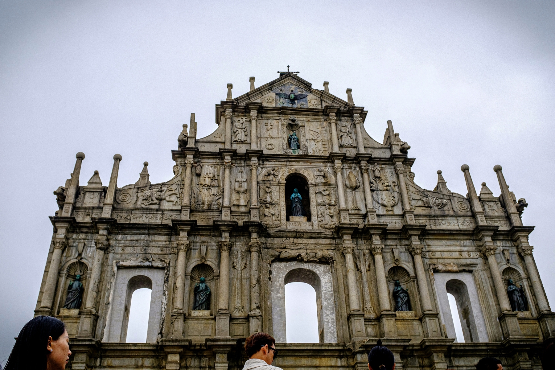 本地人因教堂前壁形似中國傳統牌坊,將之稱為大三巴牌坊。這座中西合璧的石壁在全世界的天主教教堂中是獨一無二的。