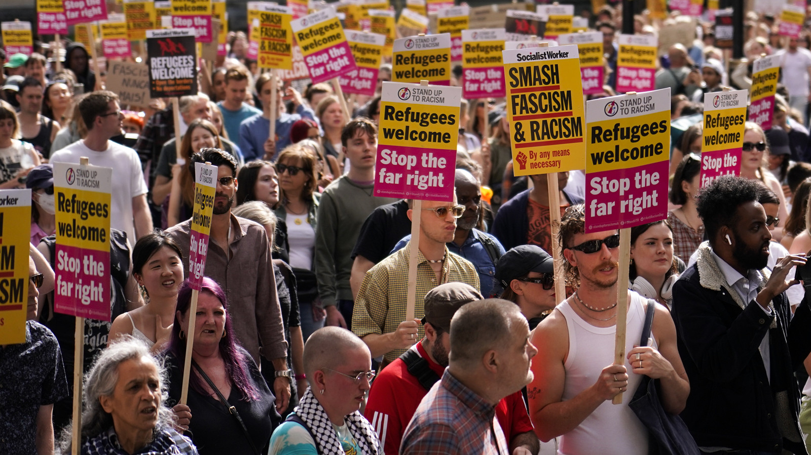 【橙訊】英國周六(10日)全國多處有大批反種族主義者上街集會,抗議最近極右翼人士發動的反移民示威觸發騷亂。在倫敦,數以千計示威者在法拉奇領導的英國改革黨辦事處外聚集,然後遊行往市中心。他們譴責法拉奇和其他極右翼人士透過反移民言論和陰謀論助長暴亂。