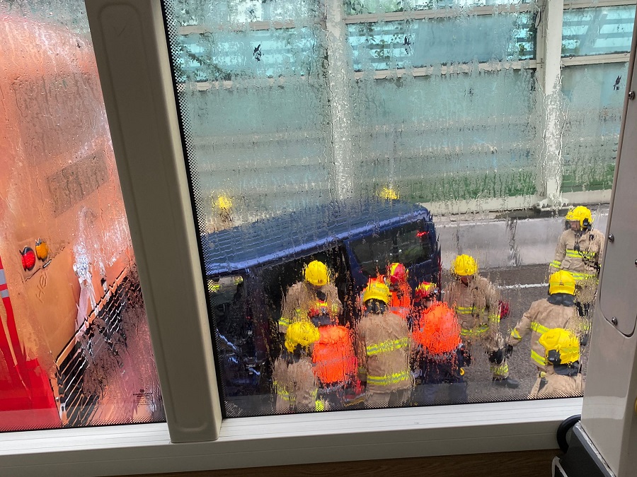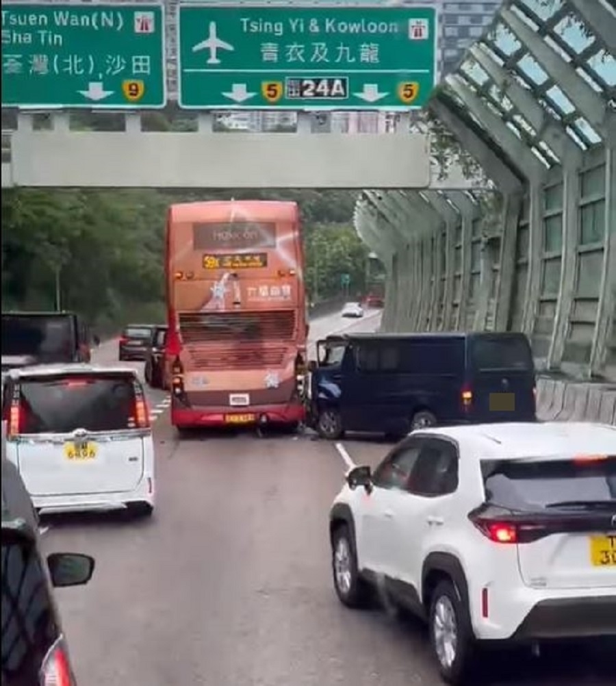 【橙訊】今日早上8時52分,黃色暴雨警告生效期間,屯門公路往九龍方向近荃灣麗城花園發生5車相撞意外,涉及九巴、私家車、電單車和2輛貨Van,共釀成10人受傷,幸全部人輕傷。
