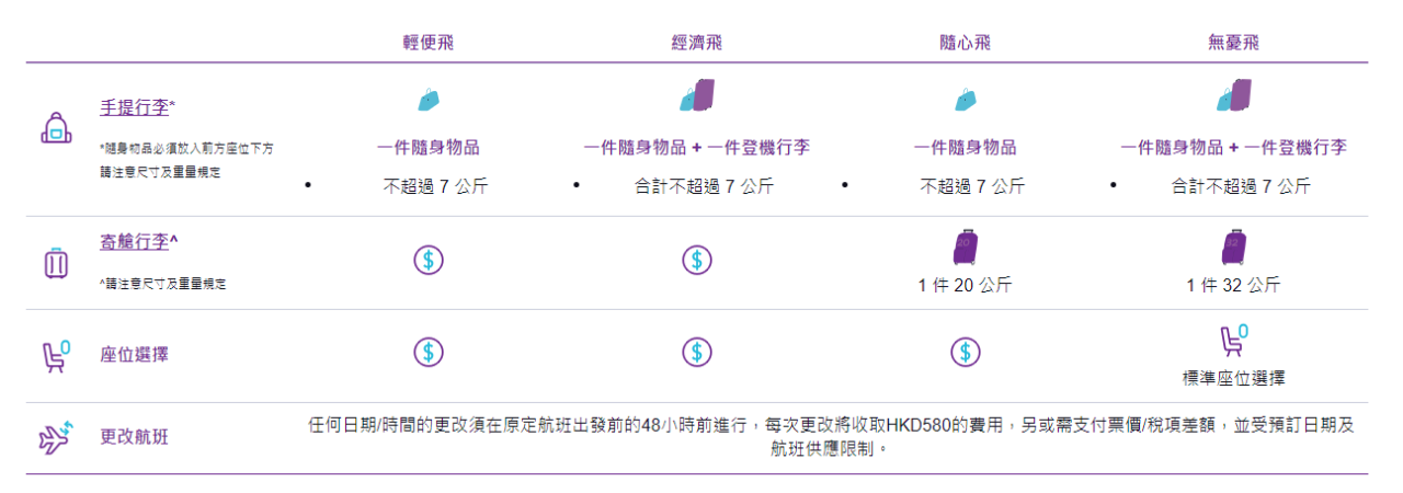3款票種任揀(圖:HK Express)