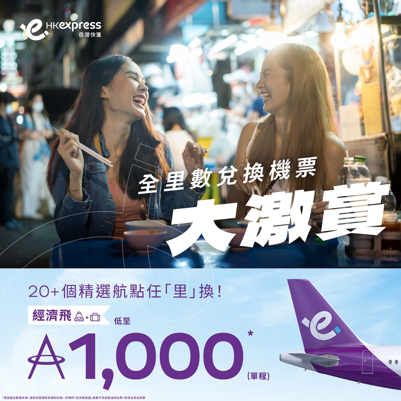 HK Express突發宣布推出「全里數兌換機票大激賞」:由即日起至8月16日,只須以低至1,000「亞洲萬里通」里數即可兌換東京、大阪、台北、曼谷、峴港、北京等超過20個目的地的單程機票。「經濟飛」、「隨心飛」、「無憂飛」任君選擇,即睇最抵機票!