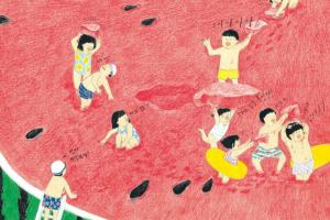 炎炎夏季,吃西瓜、去游水最能消暑。韓國插畫家Bonsoir Lune大膽地創意,將西瓜變為泳池,用畫筆勾勒了一個別樣的夏季樂園。