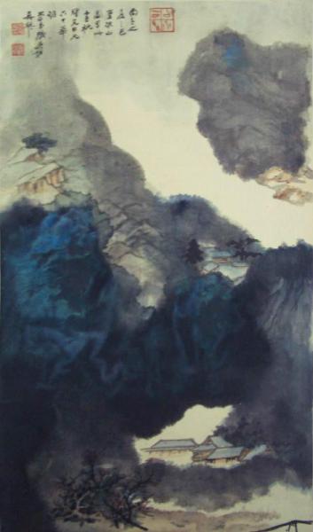 張大千的《賀壽山水》。一九六六年,何耀光慶祝其六十大壽,一眾書畫好友紛紛為其賀壽,張大千此作即為其中之一。風格採取其晚年之潑彩法而成,此作亦反映何氏與張大千之間的交誼 圖:香港政府一站通