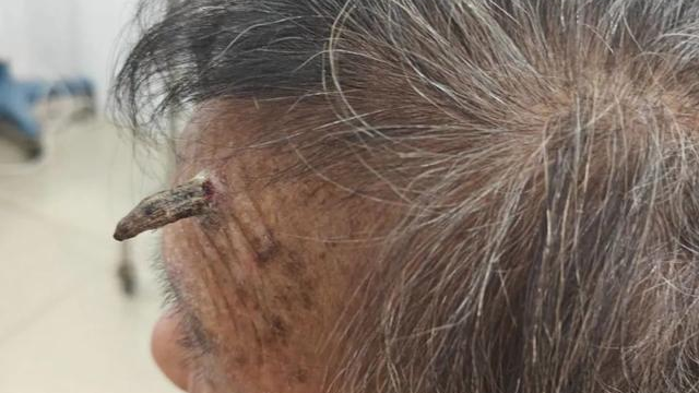 【橙訊】據內媒報道,62歲的龍阿婆三年前左側額頭出現了一個約1厘米的小腫塊,雖然不痛不癢,但影響了外觀。家人帶她去私人診所處理,但腫塊不僅未見好轉,反而逐漸增大,最終形成了類似「角」的形狀。