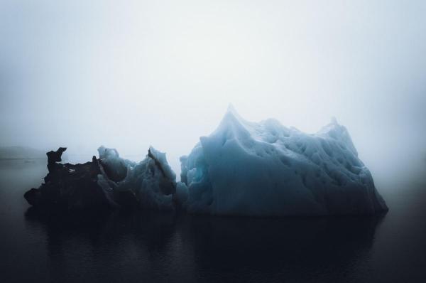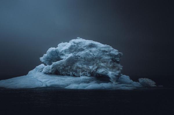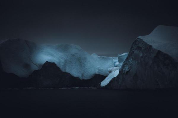 以下展示的圖片,來自他的「Beyond No Man's Land」系列,作品攝於格陵蘭西岸的迪斯科灣(Disko Bay),照片清一色採用黑藍色主調,支離破碎的冰川猶如在灰暗背景中無聲控訴。