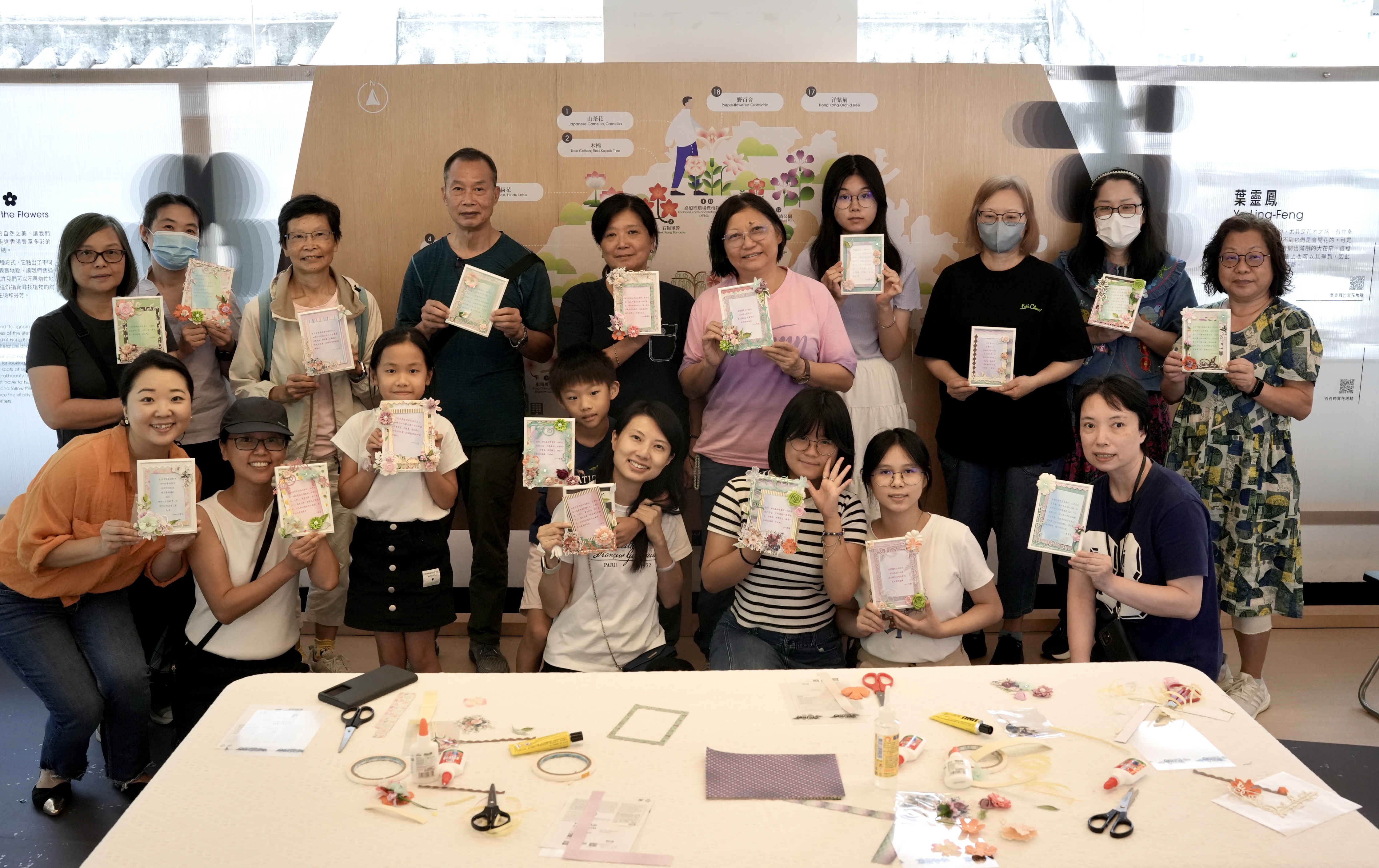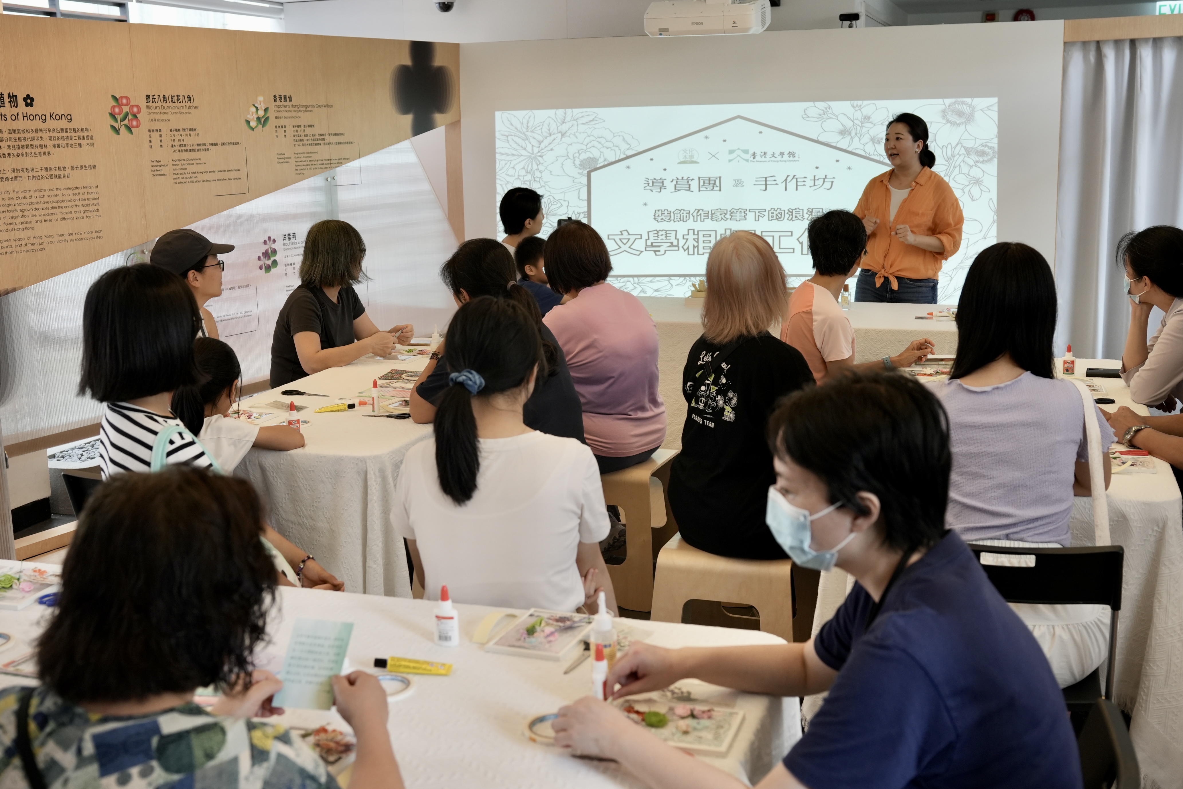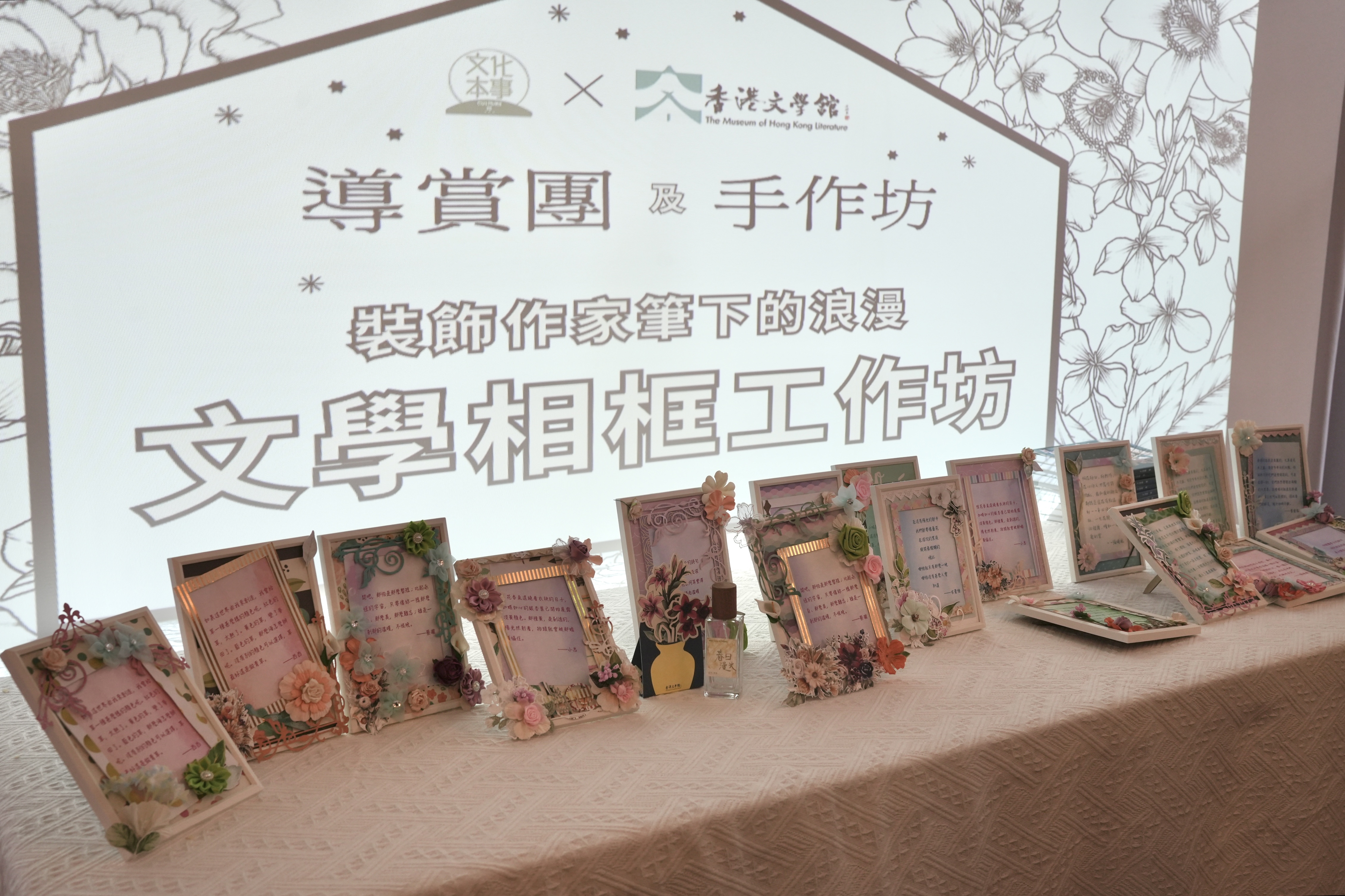及後,一眾參與者在香港紙藝師Yuki Yu的指導下,一起製作花卉主題的作家語錄相框,參與者既可學習紙藝,亦可認識不同香港作家生平。相框製成品可作擺設,自用送禮皆宜。