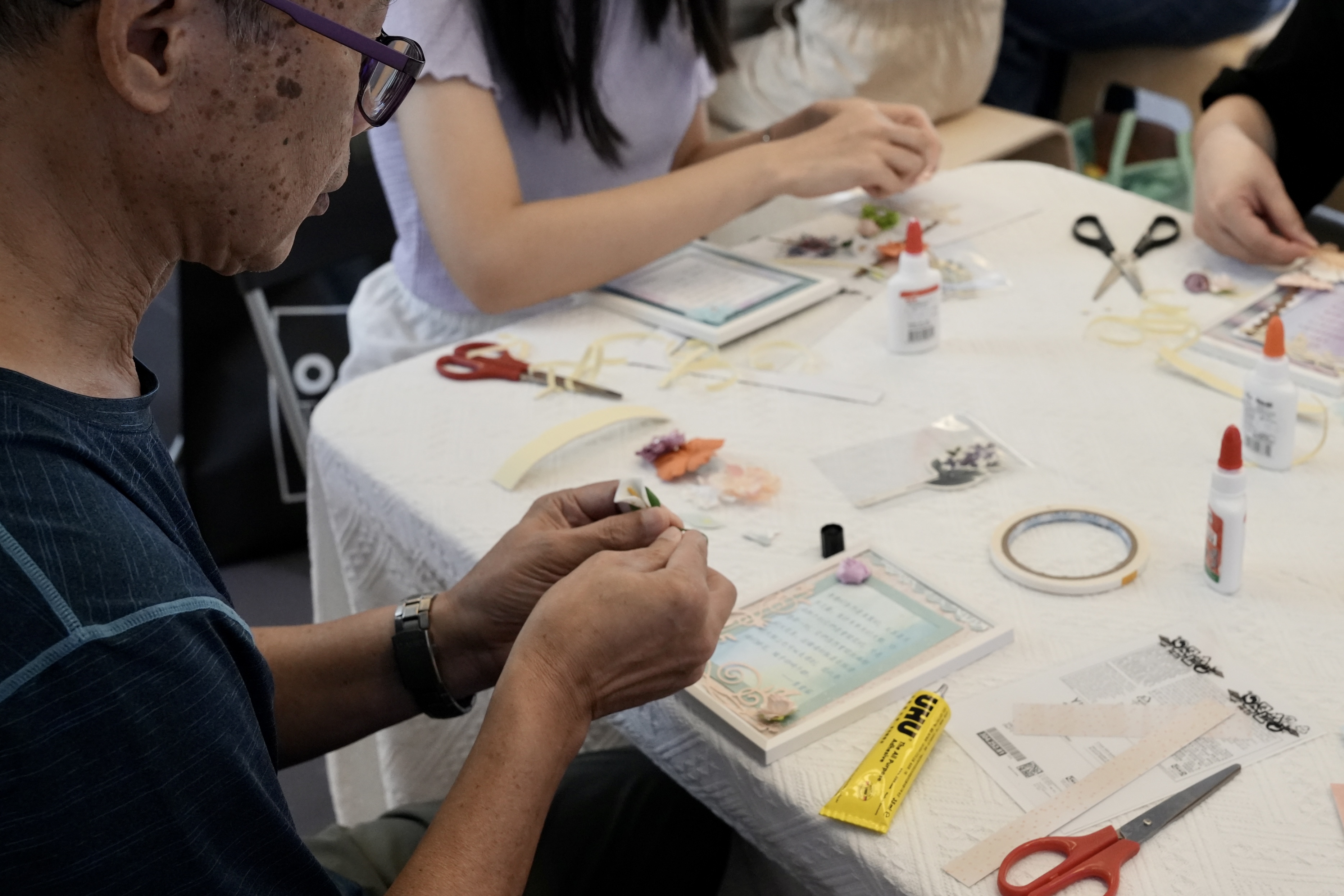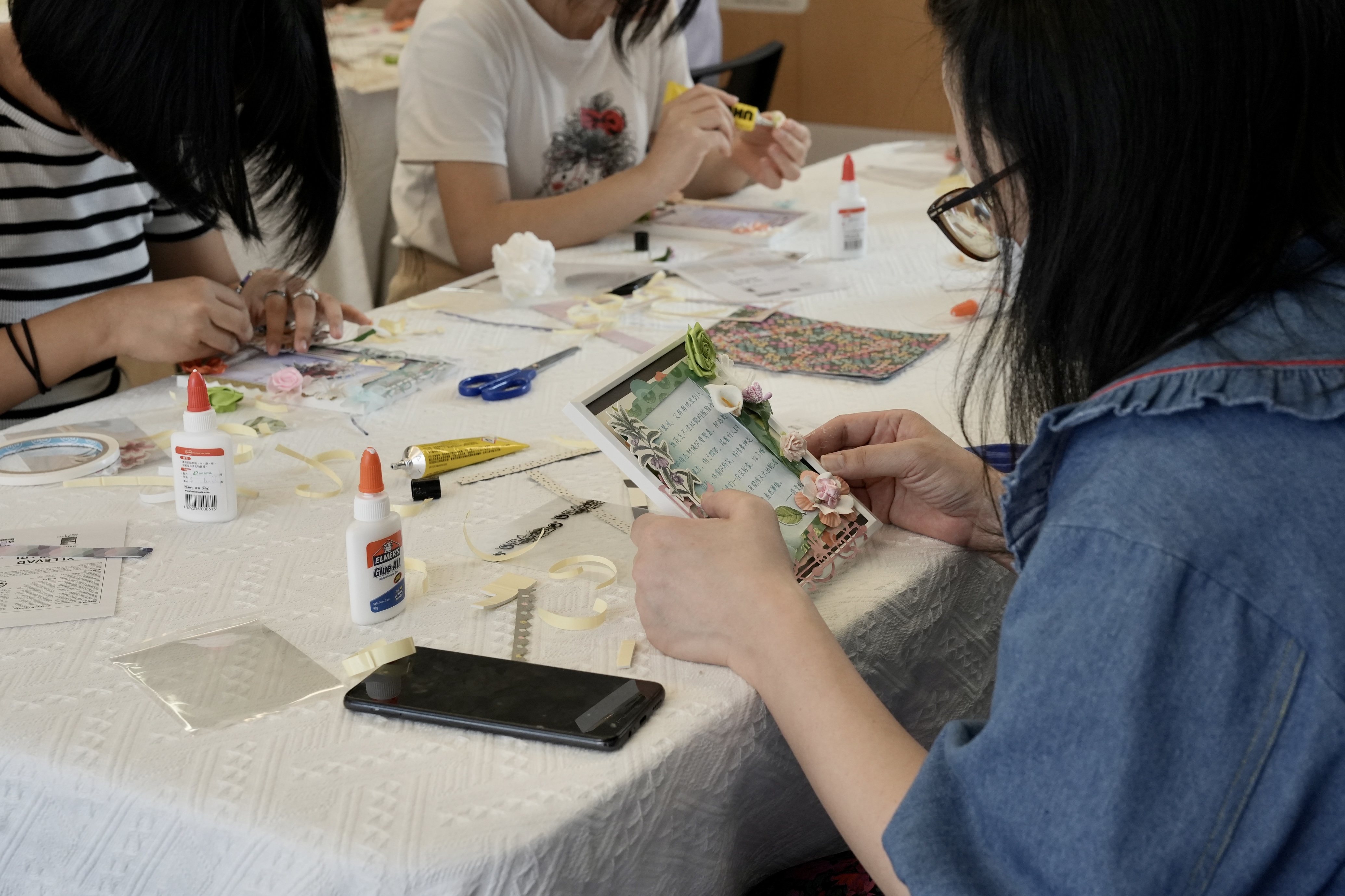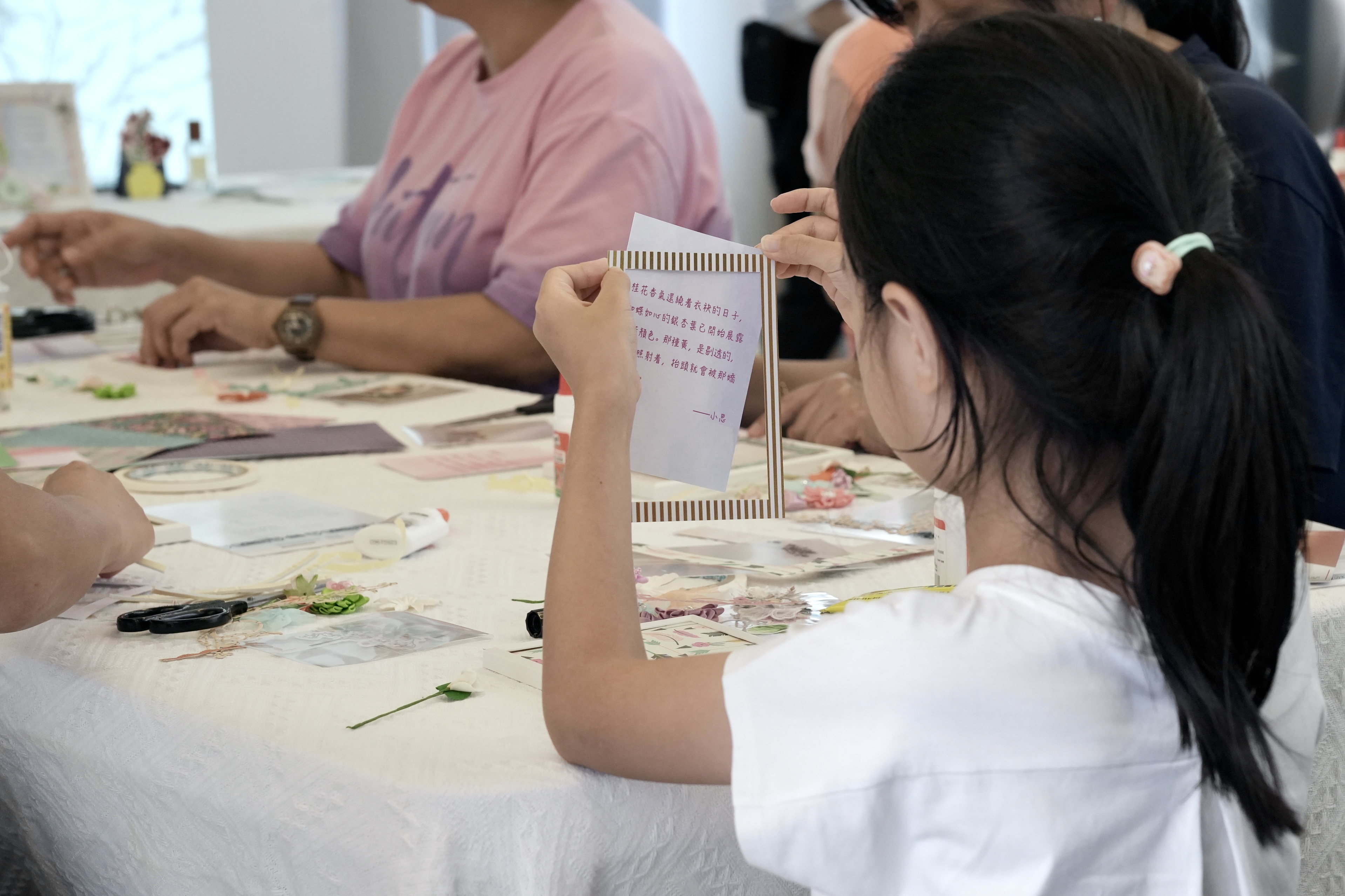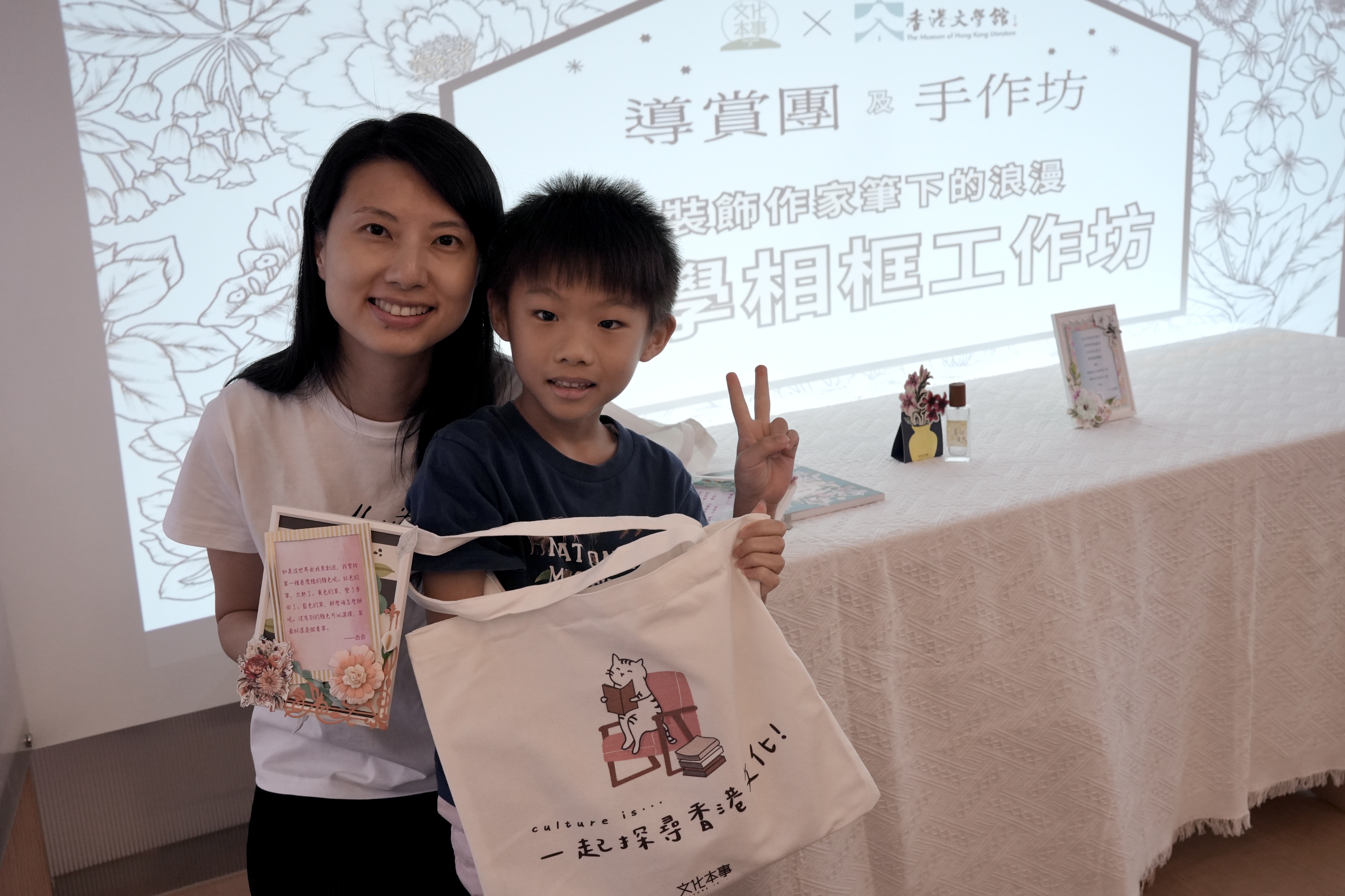 及後,一眾參與者在香港紙藝師Yuki Yu的指導下,一起製作花卉主題的作家語錄相框,參與者既可學習紙藝,亦可認識不同香港作家生平。相框製成品可作擺設,自用送禮皆宜。