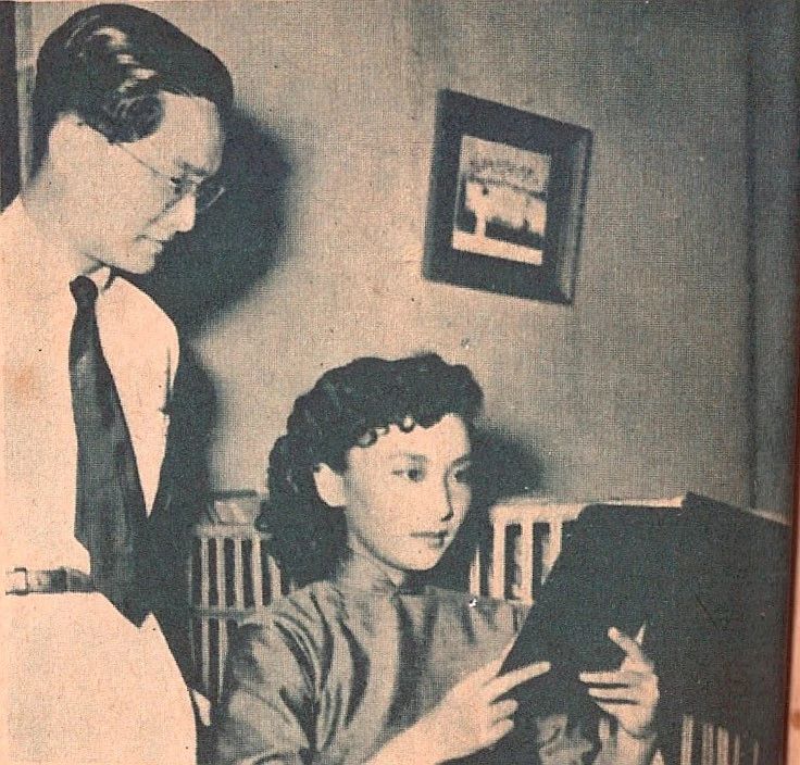 1954年5月14日金庸和夏夢攝於長城片場A棚,彼時《不要離開我》準備開鏡