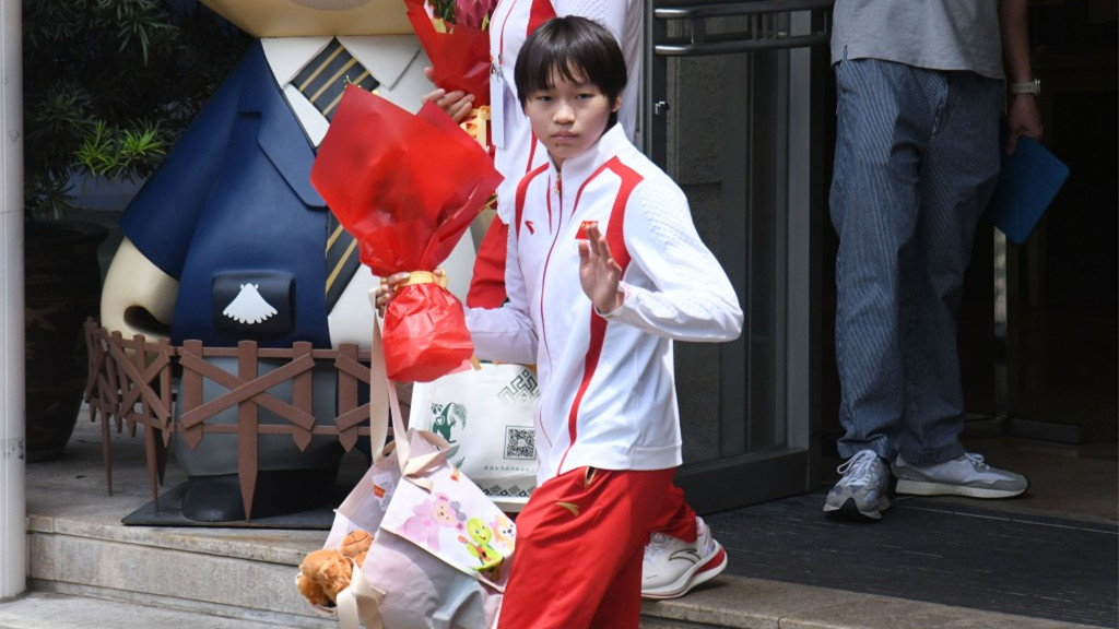 上午約9時,一眾運動員乘車抵達學校,全紅嬋下車後飛快跑進去,陳芋汐與迎接的老師及學生微笑打招呼。有關活動閉門進行,但仍引來不少市民在學校門外駐足等候,希望近距離目睹運動員風采。