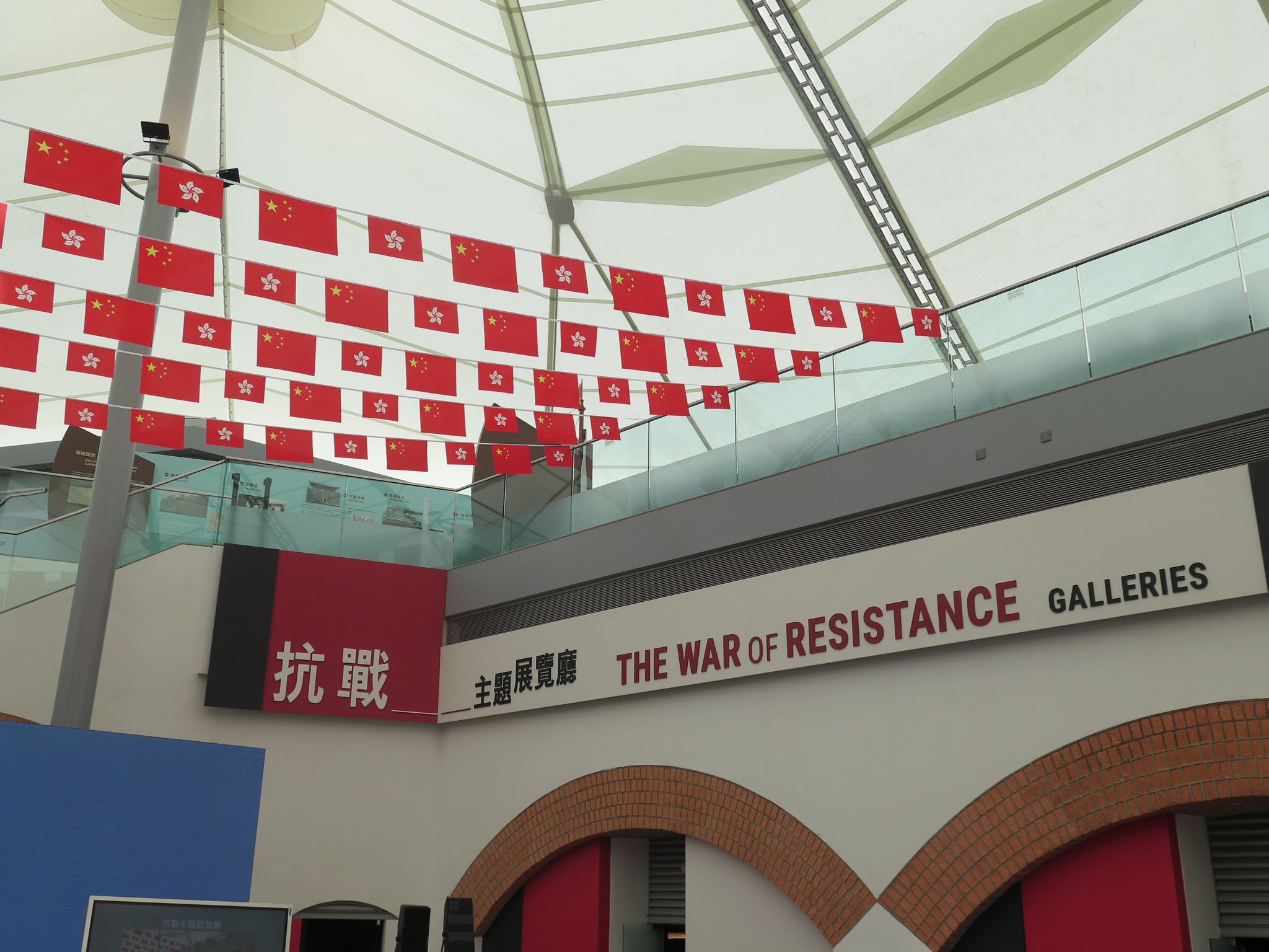 館內有關抗戰歷史的展覽廳包括「聲影說抗戰」、「日本侵華·攜手抗敵」、「日軍侵港」及「抗日游擊隊與敵後活動」,四個展廳組合命名為「抗戰主題展覽廳」,讓人們了解更多關於內地和香港民眾在抗戰期間的角色及貢獻。