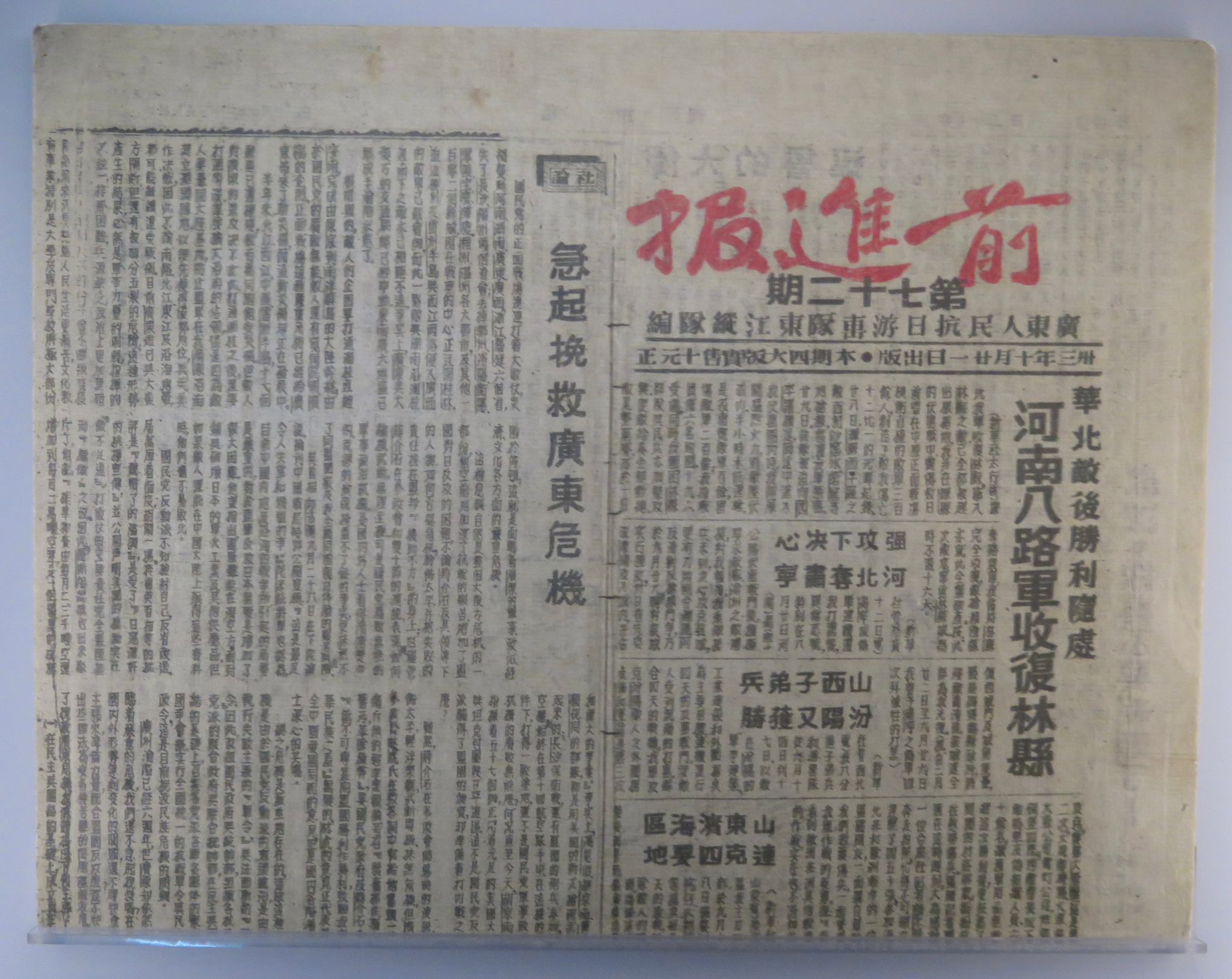 東江縱隊出版的機關報《前進報》。 圖:橙新聞